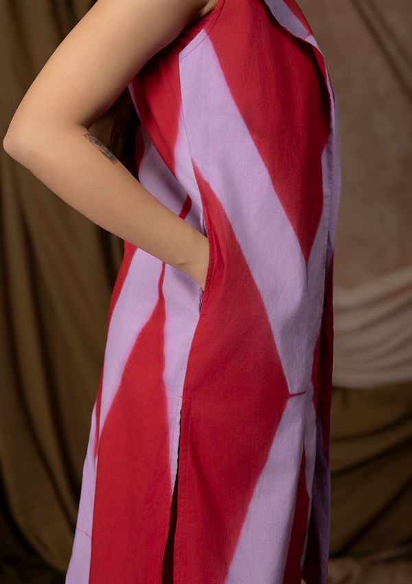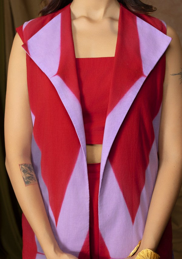 In a world that demands so much, 'Eira' is a gentle reminder that beauty can be effortless. Hand-dyed in rich purple and red using traditional clamp dye techniques, this co-ord set embodies ease, elegance but still power, for the woman who does it all and still makes it look seamless.